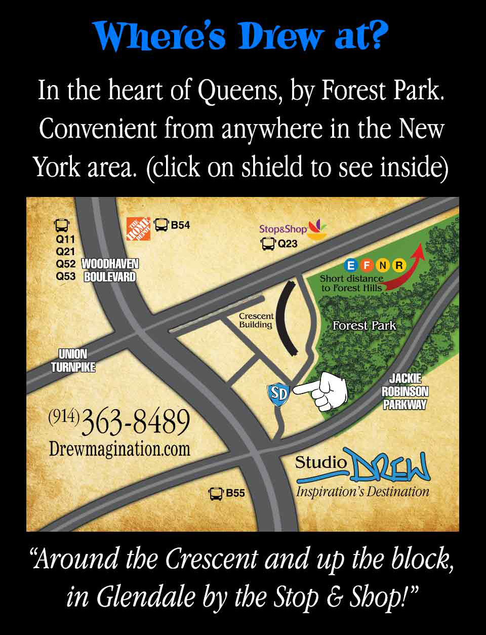 Location map of Studio Drew. Inspiration's destination. Around the Crescent and up the block, in Glendale by the Stop & Shop.